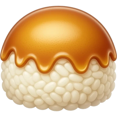 cute butter rice cake dessert emoji, small dome shaped butter rice cakes with glossy caramelized butter glaze, golden brown color, soft fluffy texture, kawaii dessert style, simple emoji design, pastel tones, sticker style, transparent background emoji