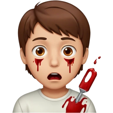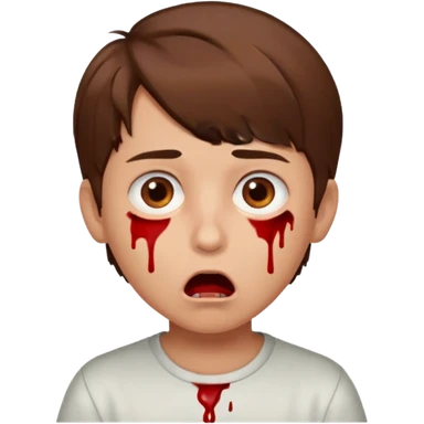 boy with brown hair and brown eyes who is supriced because he just ate pussy and he’s got blood on his mouth emoji