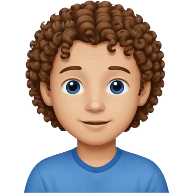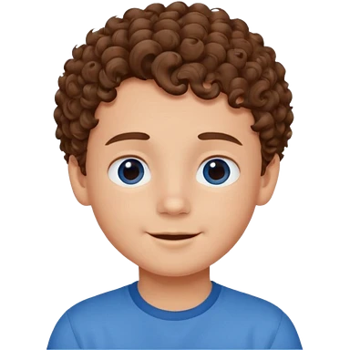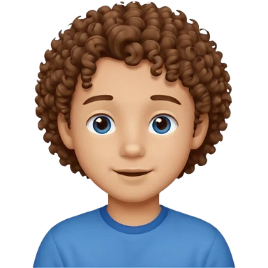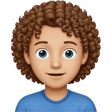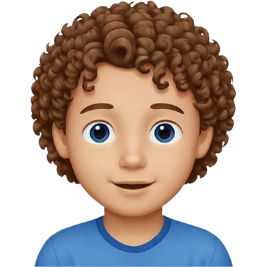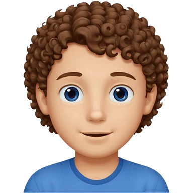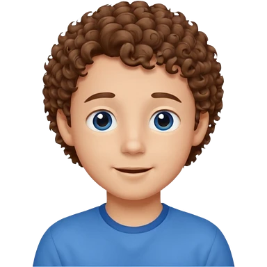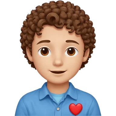 cute boy happy with heart eyes curly brown hair blue shirt emoji