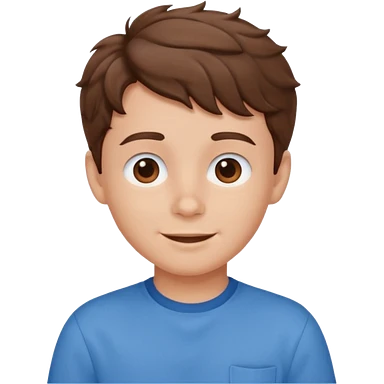 cute boy happy with heart eyes wavy short brown hair blue shirt emoji