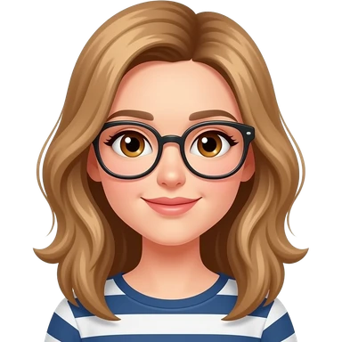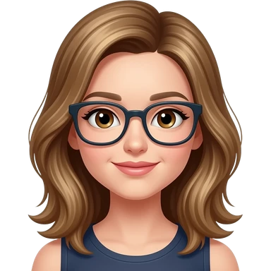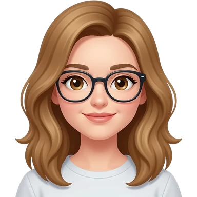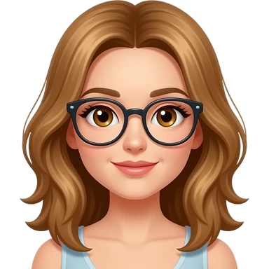 Also sie hat goldbraune Haare. Schulter lang. Stufen Schnitt. Sie hat eine süße Brille aesthetic. Sie hat Haselnussbraune Augen. emoji