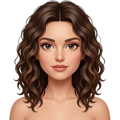 Sie hat eher starke so diese nassen und Schulter lang locken die man immer mit den fingern machen soll die fangen eher unten an und sind nicht so voluminös . Braune Augen. Sie hat eher ein junges Gesicht emoji