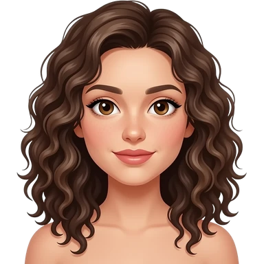 Sie hat eher sie locken die man immer mit den fingern machen soll die fangen eher unten an und sind nicht so voluminös . Braune Augen. emoji