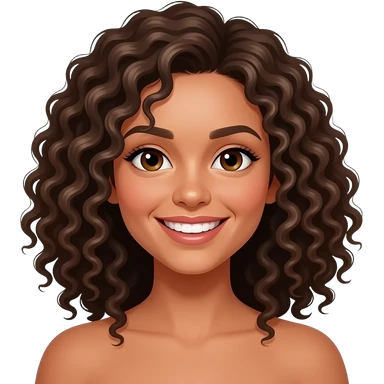 Sie hat Schulter lange Haare. Ihre starken locken fangen eher unten an also sie hat diese Brasilien locks. Wirklich vile kleine löckchen Braune Augen. Jungliches Gesicht und immer am lachen emoji